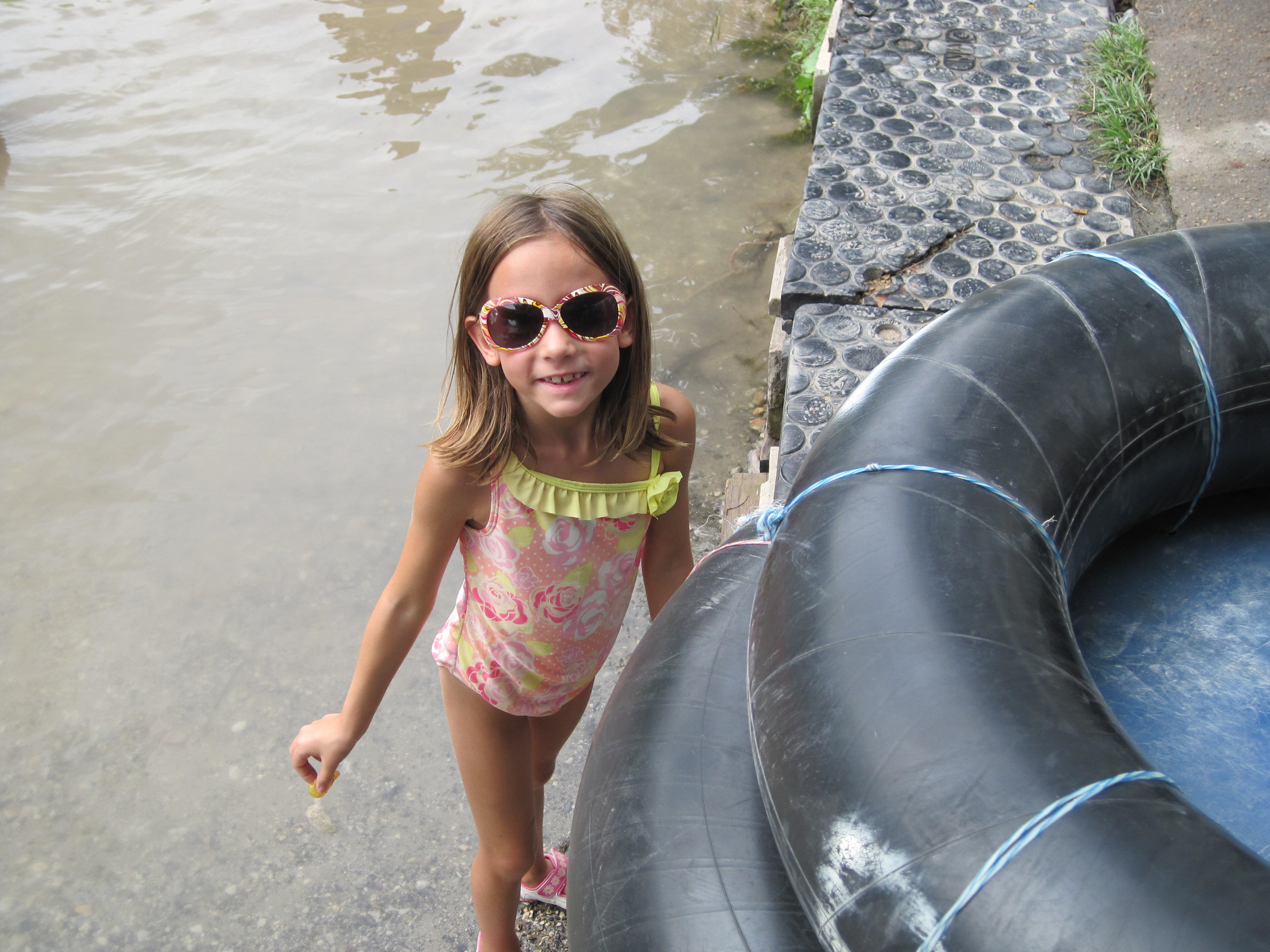 We rented four stout inner tubes from Abbott’s 306 River Outfitters in Canyon Lake, Texas, on an overcast morning and slid them into the light teal river slowly drifting by. Hannah plopped into hers and immediately began to fuss as the cool water poured into her tube—the plastic panels strapped to the underside of each inner tube are to protect our undersides from the rock-strewn river bottom rather than to keep the river from touching our bottoms. Tubing is definitely an interactive experience!